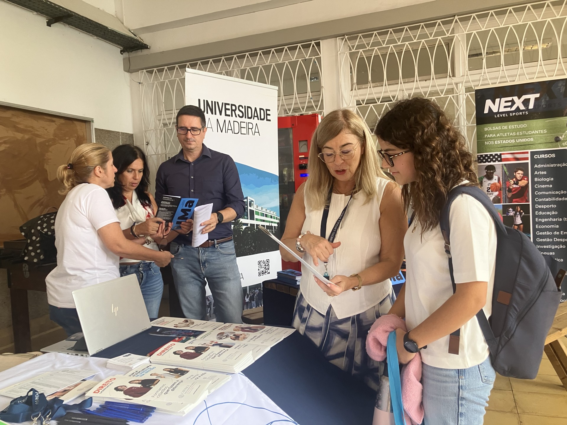 Ao longo desta manhã, a Escola Secundária Jaime Moniz voltou a acolher os representantes das vária universidades do país, inclusivamente da Universidade da Madeira, que sensibilizaram os alunos para a diversidade de cursos e instituições que têm à sua disposição, num contacto direto e com panfletos, ajudando-os assim a optar no futuro.